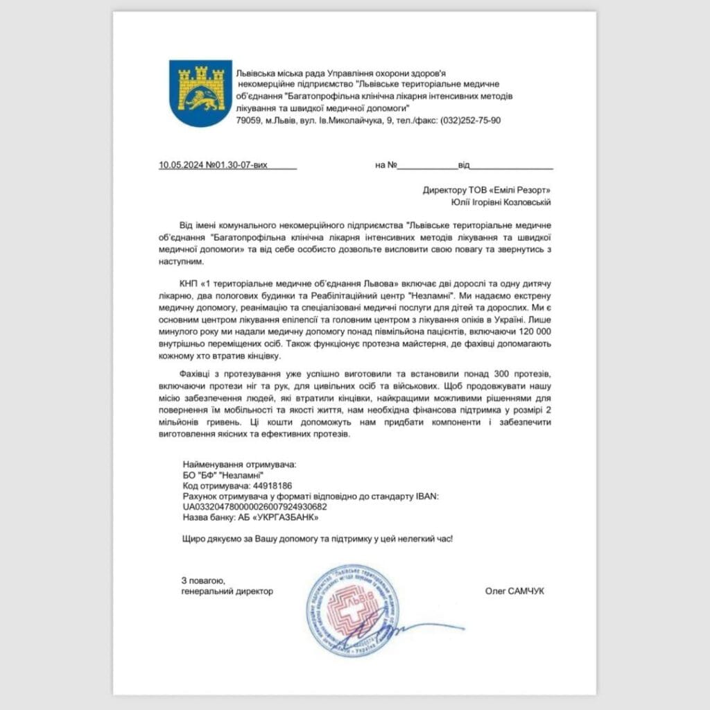 Earlier, the Emily Resort sports and recreation complex and the founder of FC Ruh, Hryhoriy Kozlovskyy, donated UAH 2 million for prosthetics for wounded Ukrainian soldiers and civilians affected by the war, who are now undergoing rehabilitation at the Superhumans Center.