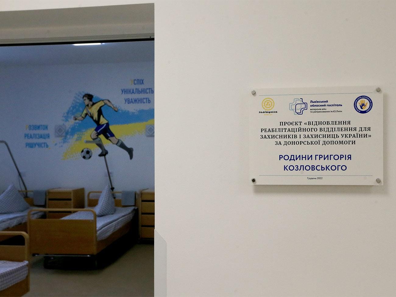 Na przykład rodzina Hryhorija Kozlovskiego pomogła finansowo wyremontować jeden z oddziałów, czyniąc go wyjątkowym. Na nowoczesnym oddziale znajduje się mural o tematyce piłkarskiej ze skrótem klubu piłkarskiego „Ruch”. „Tak się złożyło, że ten oddział jest najbardziej funkcjonalny, najbardziej zapełniony inwentaryzacją – ma klimatyzację, oczyszczanie powietrza i zupełnie nowe umeblowanie. Jesteśmy bardzo wdzięczni rodzinie pana Kozlovskiego i wszystkim darczyńcom, których mamy”, – powiedziała szefowa Międzynarodowego Biura Pomocy Ukraińcom Hanna Krysyuk.